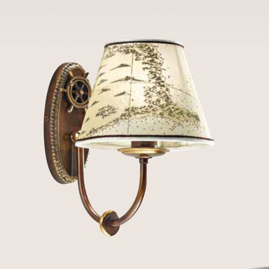 Το C4-0625-1AP είναι κομψό επιτοίχιο φωτιστικό με καμπύλο βραχίονα και υφασμάτινο καπέλο διακοσμημένο με μοτίβο τύπου χάρτη, που αποπνέει ναυτικό και παραδοσιακό χαρακτήρα. Ιδανικό για υπνοδωμάτια, καθιστικά ή διαδρόμους με ζεστό φωτισμό. Εισαγωγή & διάθεση από τη DITS Lighting.