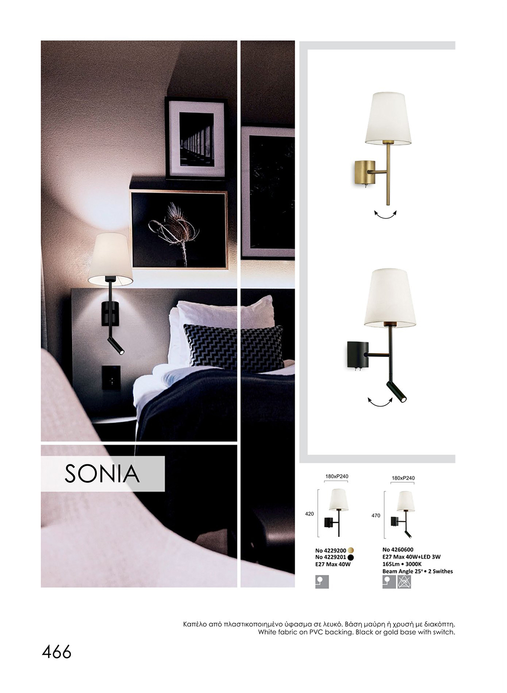 Εσωτερικού Χώρου, SONIA, Απλίκα Χρυσή Sonia, D:180, H:410