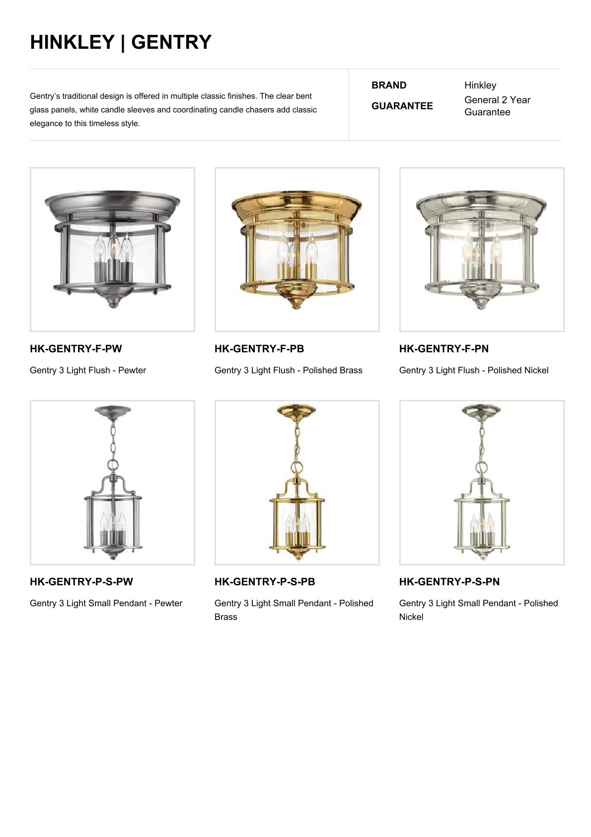 Ο παραδοσιακός σχεδιασμός του Gentry προσφέρεται σε πολλαπλά κλασικά φινιρίσματα. Τα διαφανή καμπυλωτά γυάλινα πάνελ, τα λευκά καλύμματα κεριών και οι ταιριαστές θήκες κεριών προσθέτουν κλασική κομψότητα σε αυτό το διαχρονικό στυλ.