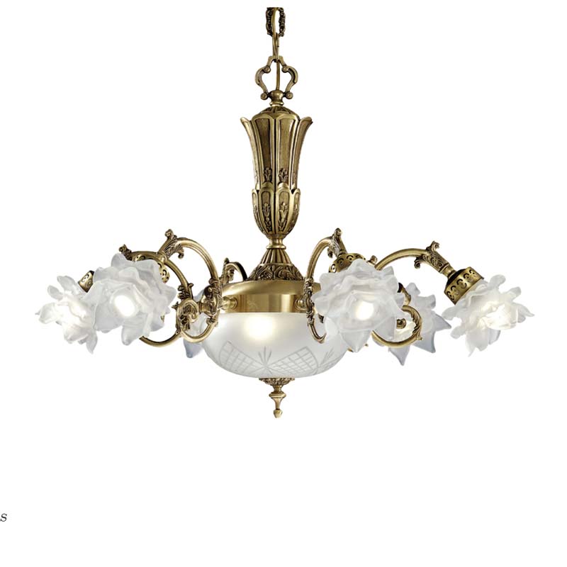 Κλασικά Φωτιστικά < Ιταλικά Possoni > ANTIQUE BRASS FINISH CHANDELIER WITH GLASS