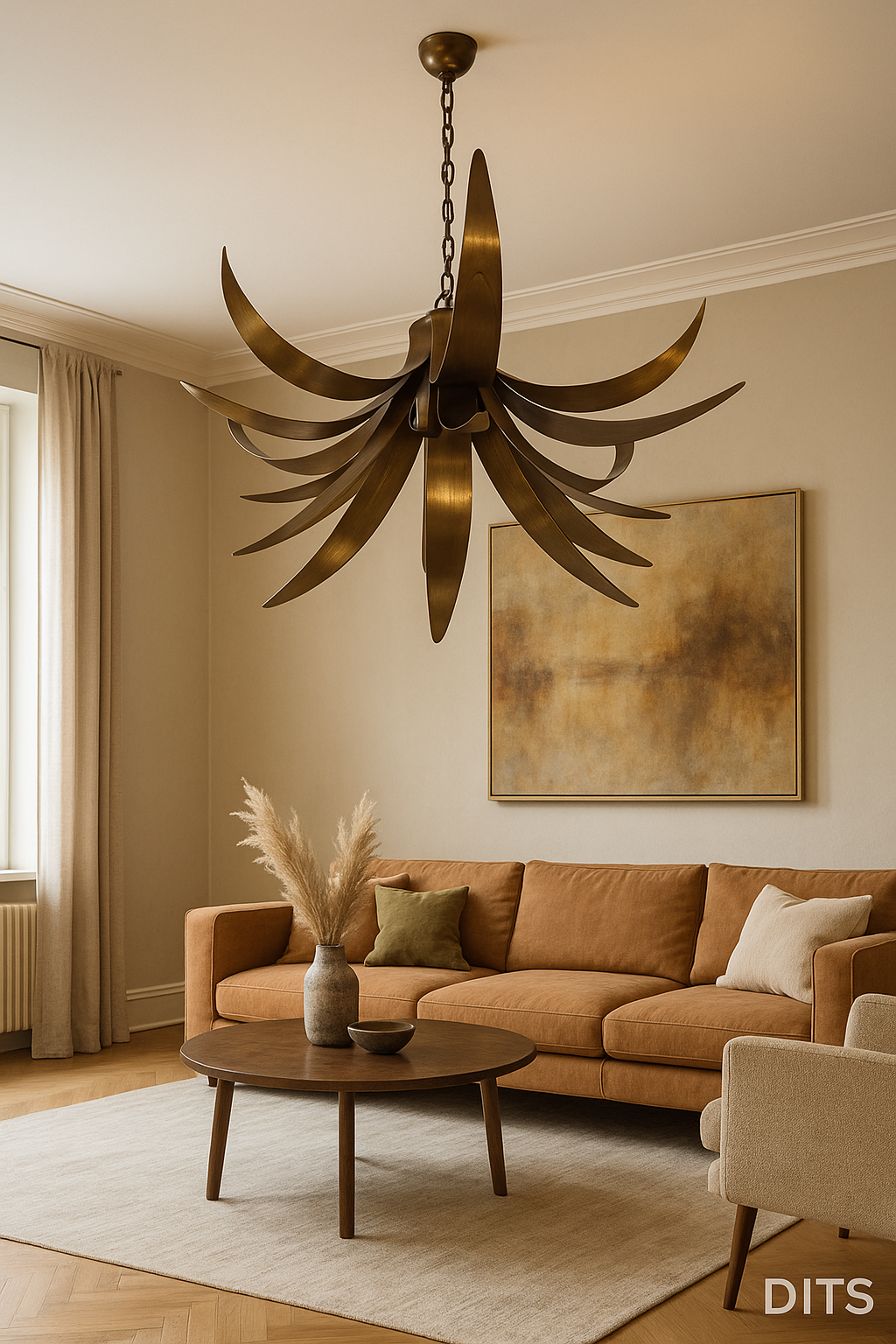 Διατίθεται σε διαφορετικές αποχρώσεις παλαίωσης και φινιρίσματα, όπως bronze, antique brass, polish brass ή ειδικές custom αποχρώσεις κατόπιν παραγγελίας. Κάθε φωτιστικό DITS μπορεί να προσαρμοστεί σε χρώμα, διαστάσεις ή βαθμό παλαίωσης ανάλογα με την αισθητική του χώρου. Ανήκει στη σειρά DITS “Flame”, η οποία περιλαμβάνει και επιτοίχιες ή κρεμαστές εκδόσεις του ίδιου σχεδίου.