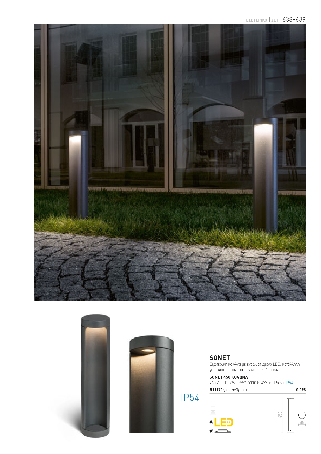 SONET 450 κολώνα γκρι ανθρακίτη 230V LED 7W 55° IP54 3000K