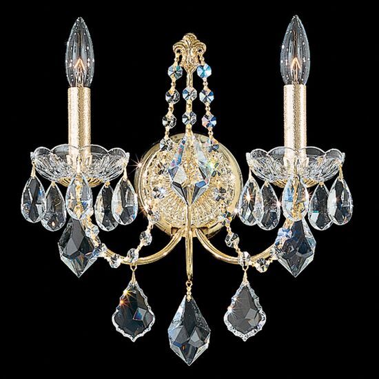 Κρυστάλλινα Κλασσικά Φωτιστικά SCHONBEK > Απλίκες επίτοιχες > Century 2 Light 220V Wall Sconce in Rich Auerelia Gold with Clear Heritage Crystal