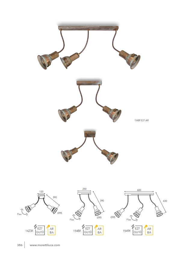 Παραδοσιακά φωτιστικά > Vintage Retro Ιταλικά > Σποτ Τοίχου > SPOT E27 ANT-RAM 3 LUCI FLEX W:600mm H:430mm 3XE27 220V IP20